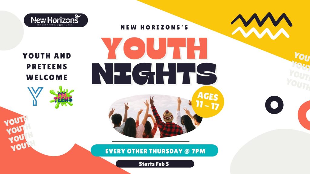 Starting this Feb 5 but happening every other Thrusday we have youth nights, for youth and preteens ages 11-17. Come join us!